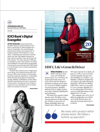 <p>Vibha Padalkar - MD & CEO, featured in Fortune India’s list of 'Most Powerful Women in Business 2025'</p>