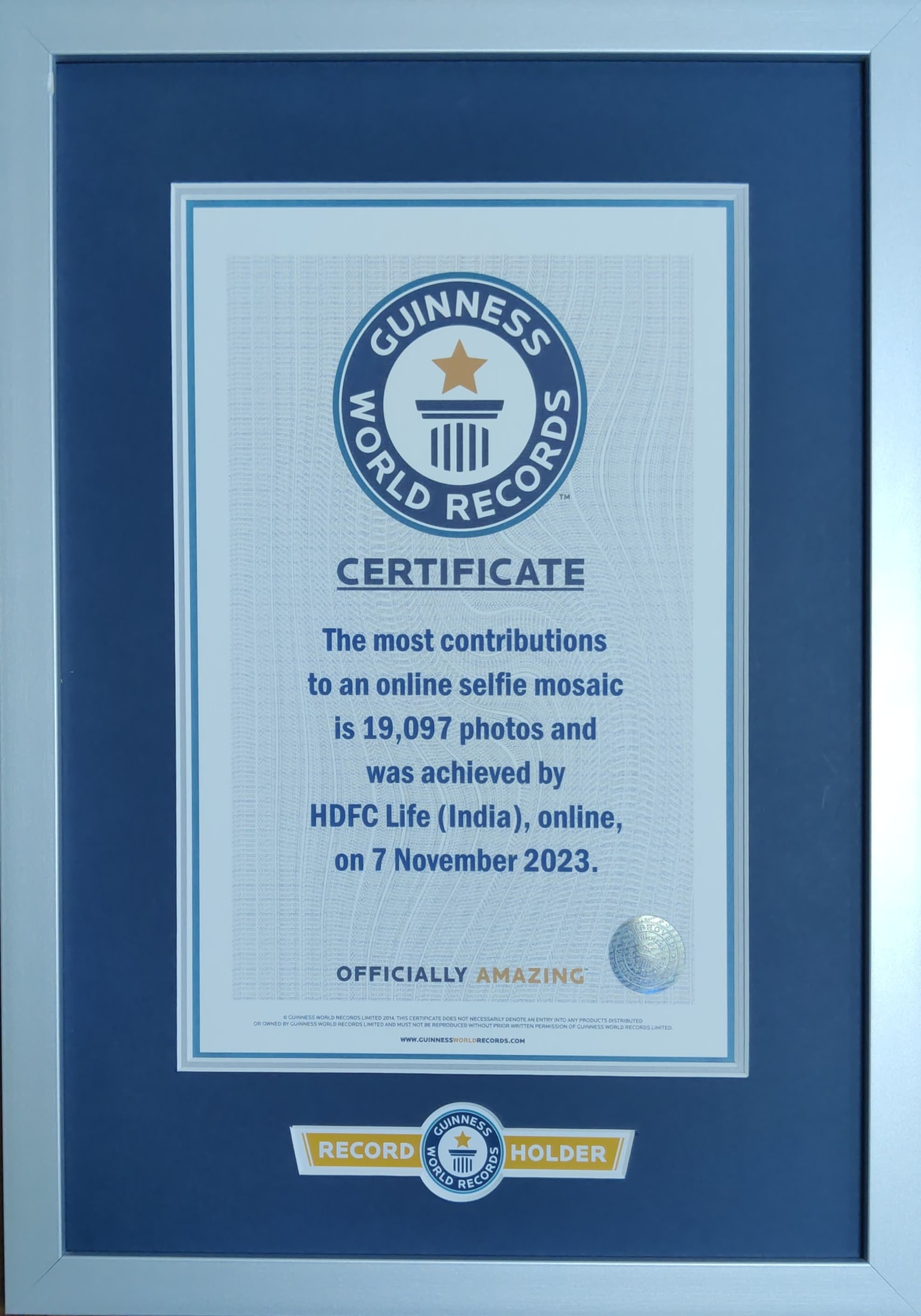 HDFC Life has achieved Guinness World RecordsTM title for the 'Most contributions to an online selfie mosaic' under the Insure India campaign. The logo has been recreated with selfies submitted by the participants in an effort to increase awareness about Life Insurance.
